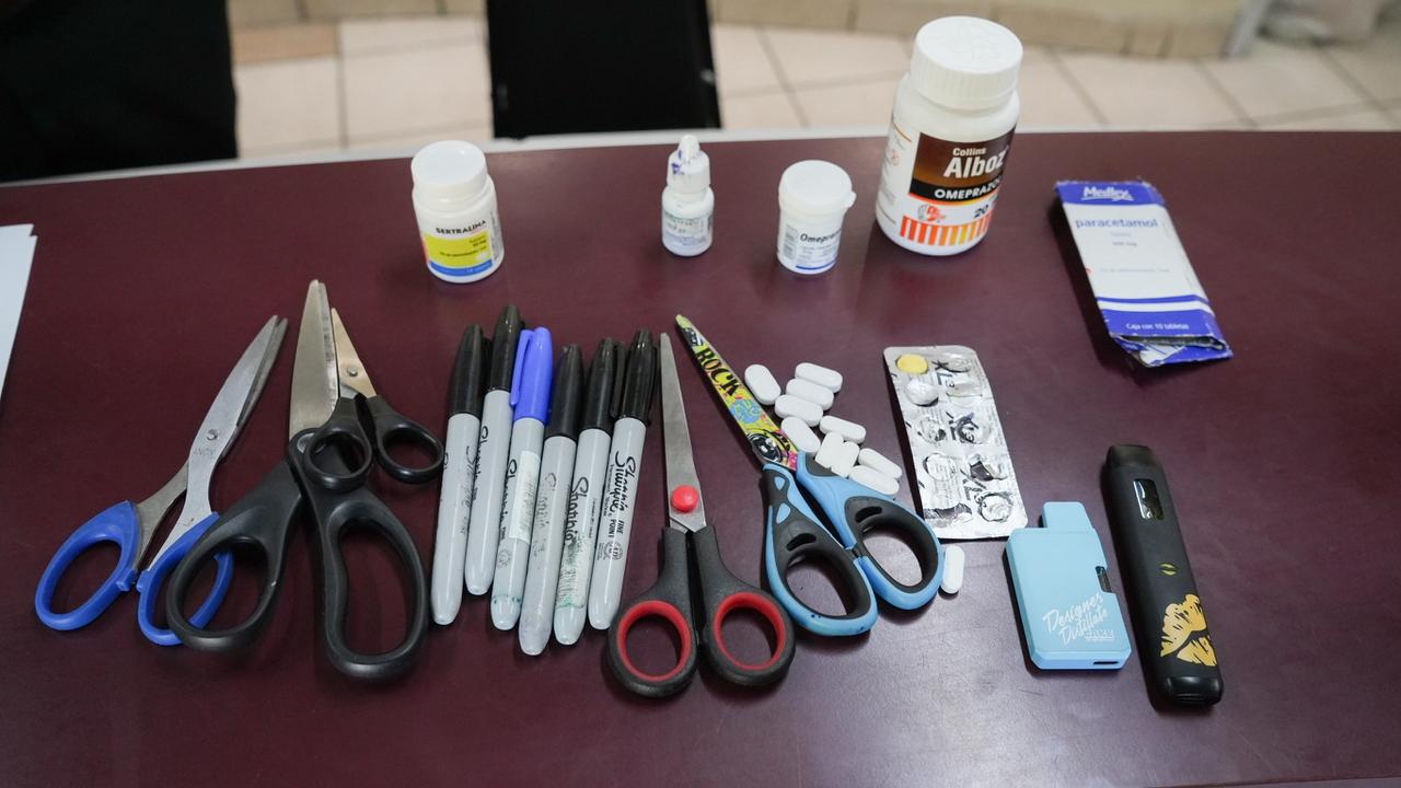 Durante la jornada se identificaron y retiraron artículos que no corresponden al entorno escolar, tales como tijeras puntiagudas, plumones permanentes, medicamentos sin prescripción médica y con apoyo del agente canino 'Rico' se localizó un dispositivo electrónico tipo vapeador, al ser intervenido el alumno entregó un segundo dispositivo, los cuales fueron asegurados de manera preventiva y puestos bajo resguardo del personal académico para el seguimiento correspondiente.