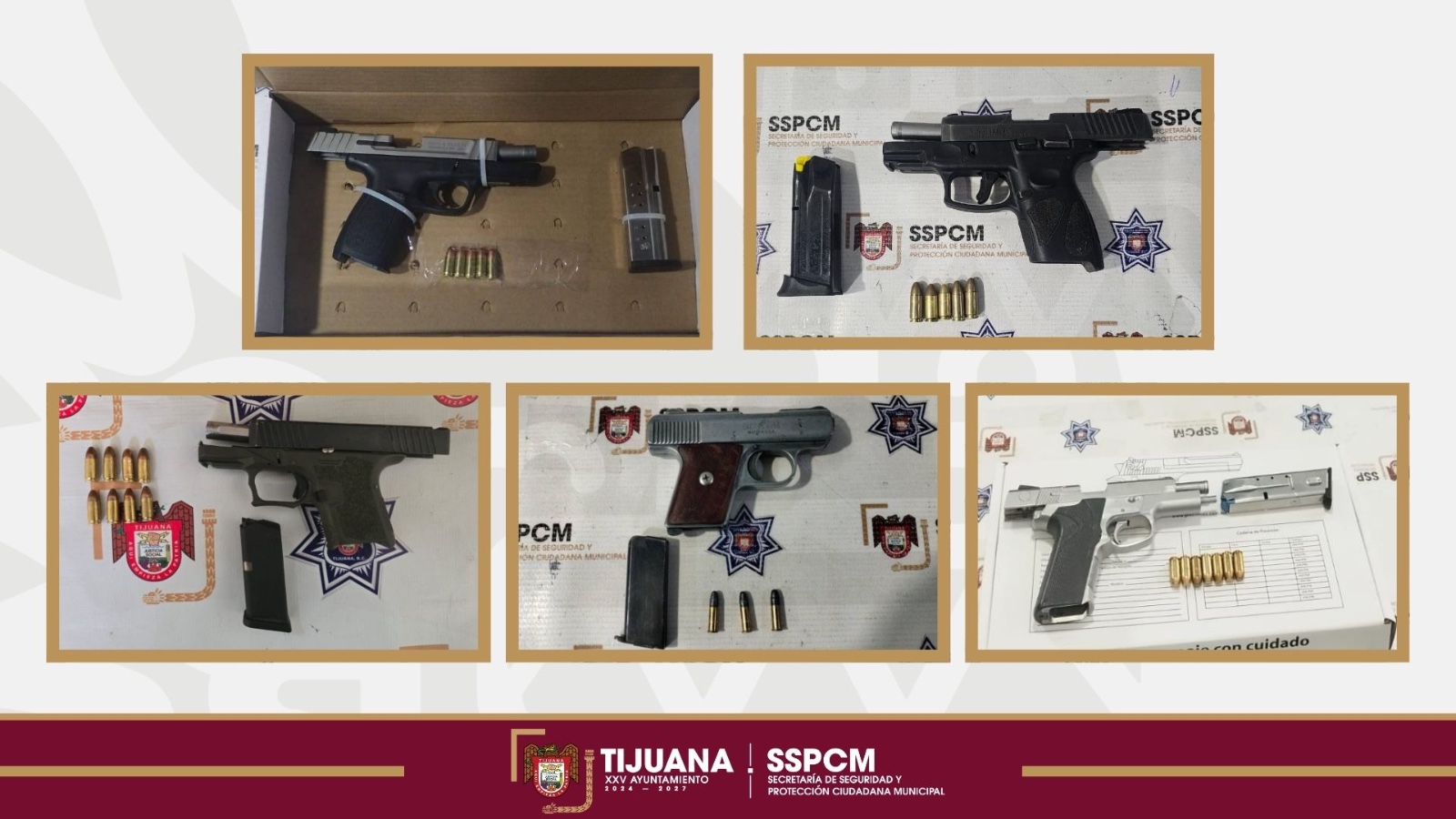 La Secretaría de Seguridad y Protección Ciudadana Municipal refrenda su compromiso de continuar fortaleciendo los patrullajes preventivos y operativos estratégicos en las colonias de la ciudad, destacando la importancia del retiro de armas de fuego de las calles, acciones que contribuyen directamente a salvaguardar la integridad y tranquilidad de la comunidad tijuanense.
